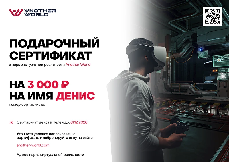 Сертификат можно получить самовывозом на нашей VR-арене.
